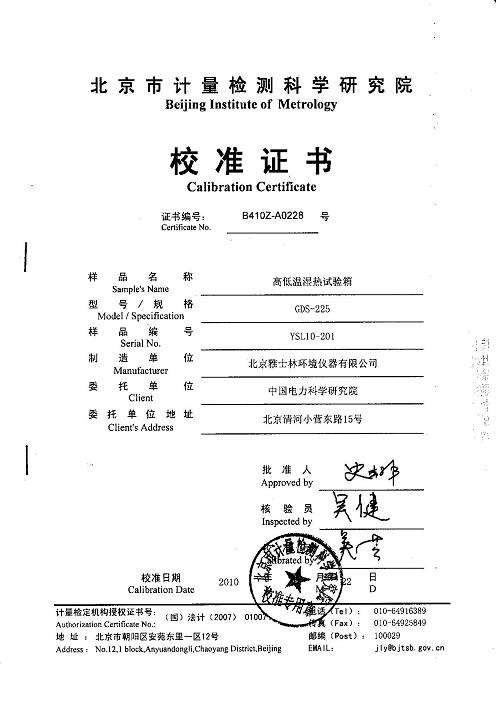 主頁 > 服務中心 > 校準證書 >