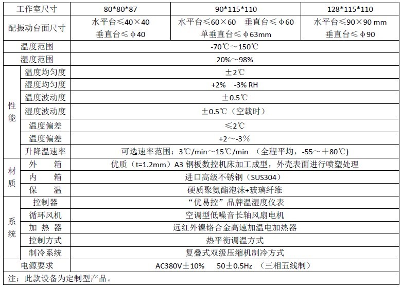 溫濕度振動三綜合試驗(yàn)機(jī)主體部分:主體外殼采用優(yōu)質(zhì)A3鋼板并且經(jīng)過噴塑處理,內(nèi)膽采用SUS高級不銹鋼鏡面板保溫介質(zhì)為超細(xì)玻璃棉;