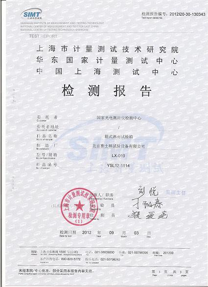 >>淋雨試驗(yàn)箱檢測報(bào)告-上海計(jì)量院-國家光電中心