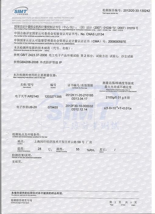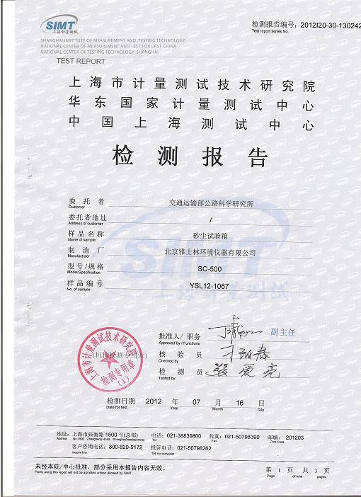 >>砂塵試驗箱檢測報告-上海計量院-交通運(yùn)輸部