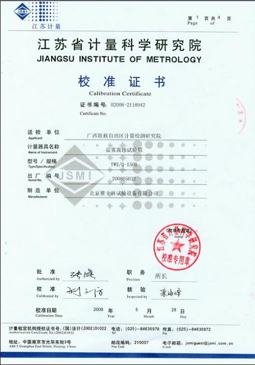 >>鹽霧腐蝕試驗(yàn)箱校準(zhǔn)證書-江蘇計(jì)量院-廣西計(jì)量院