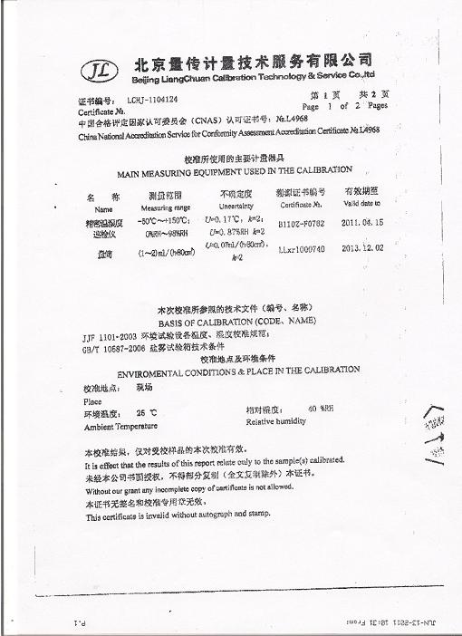鹽霧腐蝕試驗(yàn)箱校準(zhǔn)證書-北京量傳計(jì)量-中安電子