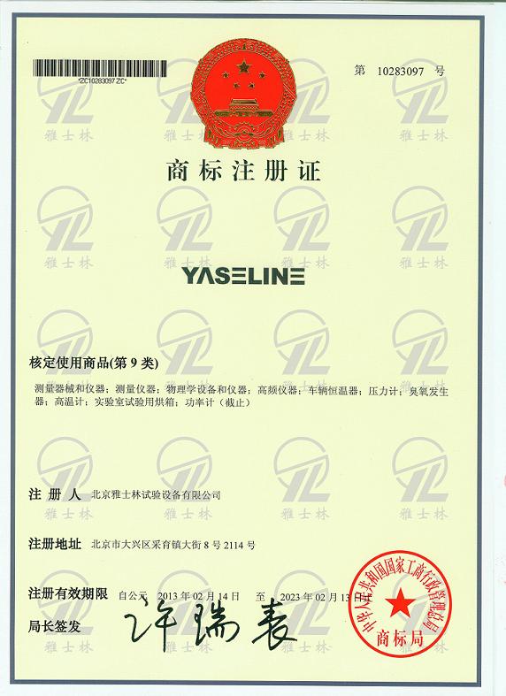 近日,北京雅士林試驗(yàn)設(shè)備有限公司(以下簡(jiǎn)稱(chēng)“雅士林儀器”)注冊(cè)的“YASELINE”英文商標(biāo),獲得國(guó)家工商行政管理總局商標(biāo)局注冊(cè)通過(guò)。此次注冊(cè)通過(guò)的“YASELINE”商標(biāo)為雅士林儀器近年來(lái)全力打造高端試驗(yàn)箱品牌。 多年來(lái),雅士林儀器堅(jiān)持貫徹品牌戰(zhàn)略,進(jìn)行全方位的市場(chǎng)開(kāi)拓,全力打造“雅士林試驗(yàn)箱”高端品牌。雅士林儀器實(shí)施以品牌求發(fā)展的品牌經(jīng)營(yíng)戰(zhàn)略,本著“品質(zhì)卓越,盡善盡美”的質(zhì)量理念,強(qiáng)化員工素質(zhì),加強(qiáng)服務(wù)流程的完善和服務(wù)技能的提升,建立以顧客為導(dǎo)向的服務(wù)系統(tǒng)和服務(wù)標(biāo)準(zhǔn)。注重產(chǎn)品技術(shù)創(chuàng)新,追求高品質(zhì)的產(chǎn)品研發(fā),截至目前公司共獲得國(guó)家發(fā)明、實(shí)用新型與外觀專(zhuān)利多項(xiàng),引領(lǐng)了國(guó)內(nèi)環(huán)境試驗(yàn)設(shè)備行業(yè)技術(shù)創(chuàng)新的高度,廣大用戶對(duì)“雅士林試驗(yàn)箱”品牌信賴(lài)有加,市場(chǎng)占有率逐年提高。 YASELINE商標(biāo)的取得,一方面有利于公司加強(qiáng)對(duì)品牌及注冊(cè)商標(biāo)的保護(hù),是對(duì)雅士林儀器品質(zhì)實(shí)力、品牌價(jià)值、品牌建設(shè)成果的肯定,也是對(duì)雅士林儀器資產(chǎn)規(guī)模、市場(chǎng)占有率、品牌影響力、社會(huì)口碑等綜合實(shí)力的高度肯定;另一方面對(duì)于提高公司品牌和市場(chǎng)知名度,打造高端環(huán)試品牌,開(kāi)拓國(guó)際市場(chǎng)等具有積極意義。