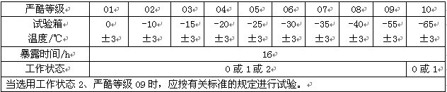 條件試驗(yàn)12方法:溫?zé)幔ㄏ聢D為條件試驗(yàn)方法12溫?zé)岬膰?yán)酷等級(jí)表)