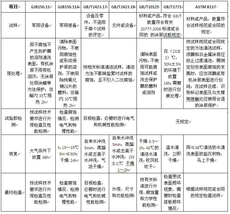 >>鹽霧試驗箱不同標準對試樣處理和檢測的要求